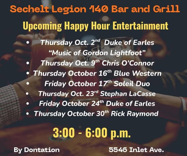 Gibsons Legion: The Eclectic Singers’ Circle Oct 23 5:00 pm - 8:00 pm Gibsons Legion: The Eclectic Singers’ Circle