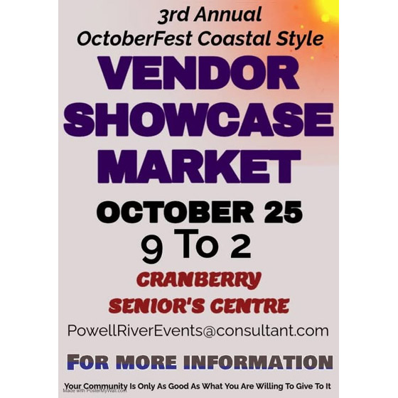 PR – Cranberry Seniors Centre: Vendor Showcase Market Oct 25 9:00 am - 2:00 pm PR – Cranberry Seniors Centre: Vendor Showcase Market
