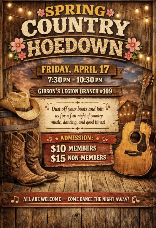 Dance to the Sunshine Coast's finest. Country, 50s, 60s, 70s music. Tickets are $15 in advance at the SSAC front desk or A Little Brit of Heaven in Sechelt, or $20 at the door.