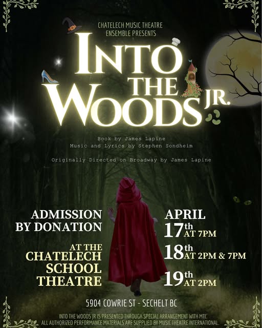 The Chatelech Music Theatre Ensemble presents, "Into the Woods" Jr. on Friday, April 17 at 7 pm, Saturday, April 18 at 2 pm and 7 pm and Sunday April 19 at 2 pm. Admission is by donation. This hour-long musical combines the tales of several fairy tale characters in song and dance and lessons. Will […]