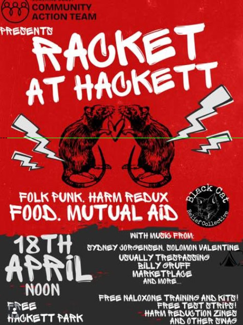 Free music and food and trainings. Alcohol free & good community behaviour. Inclusion reigns. All are welcome. The penultimate event following a whole important week of upcoming learnings, films, presentations, trainings, vigils, advocacy, organizing, and stigma busting (April 13th-18th) as we acknowledge 10 years since the toxic drug emergency was declared. Ten years too long.