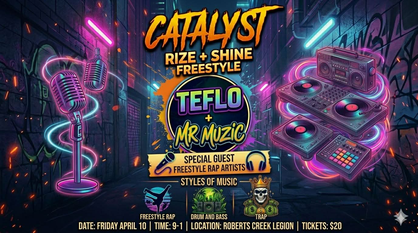 We’re bringing together the hottest local energy for a high-octane showcase featuring a special Freestyle performance from duo Rize + Shine, followed by dance music by Teflo + Mr Muzic, plus a heavy-hitting lineup of special guest freestyle artists starting the night off.