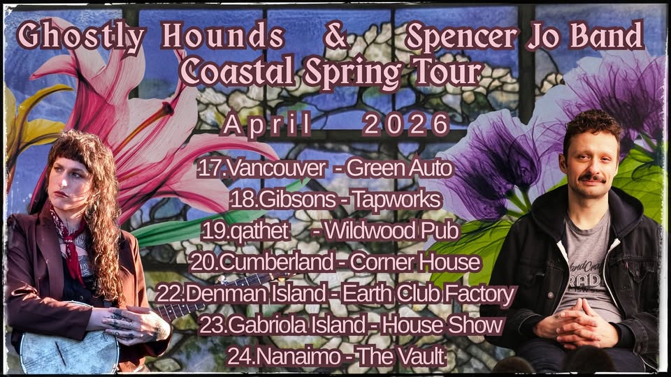 A triple bill concert featuring Ghostly Hounds (Victoria); Spencer Jo Band (Calgary); and Shorefox (Salt Spring Island)