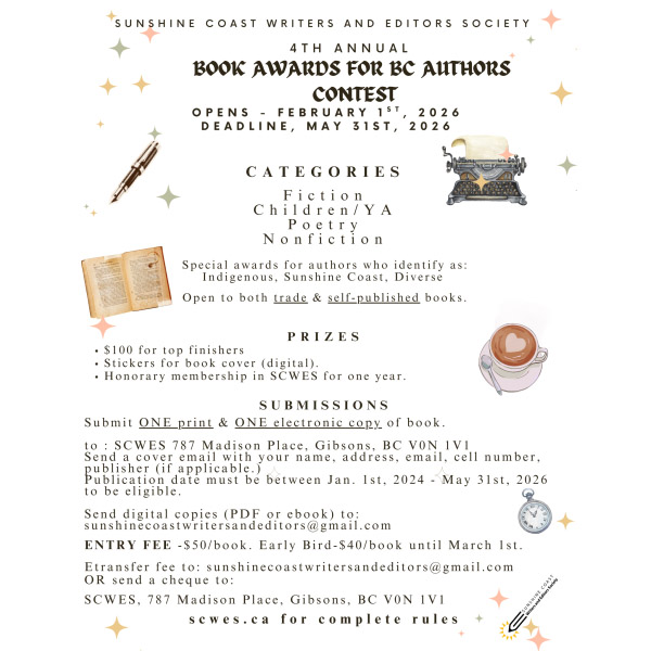 Deadline May 31st. The 4th Annual SCWES Book Awards for BC Authors Contest opens Feb. 1st, 2026 for books published both traditionally or self-published for poetry, fiction, non-fiction and children's. […]