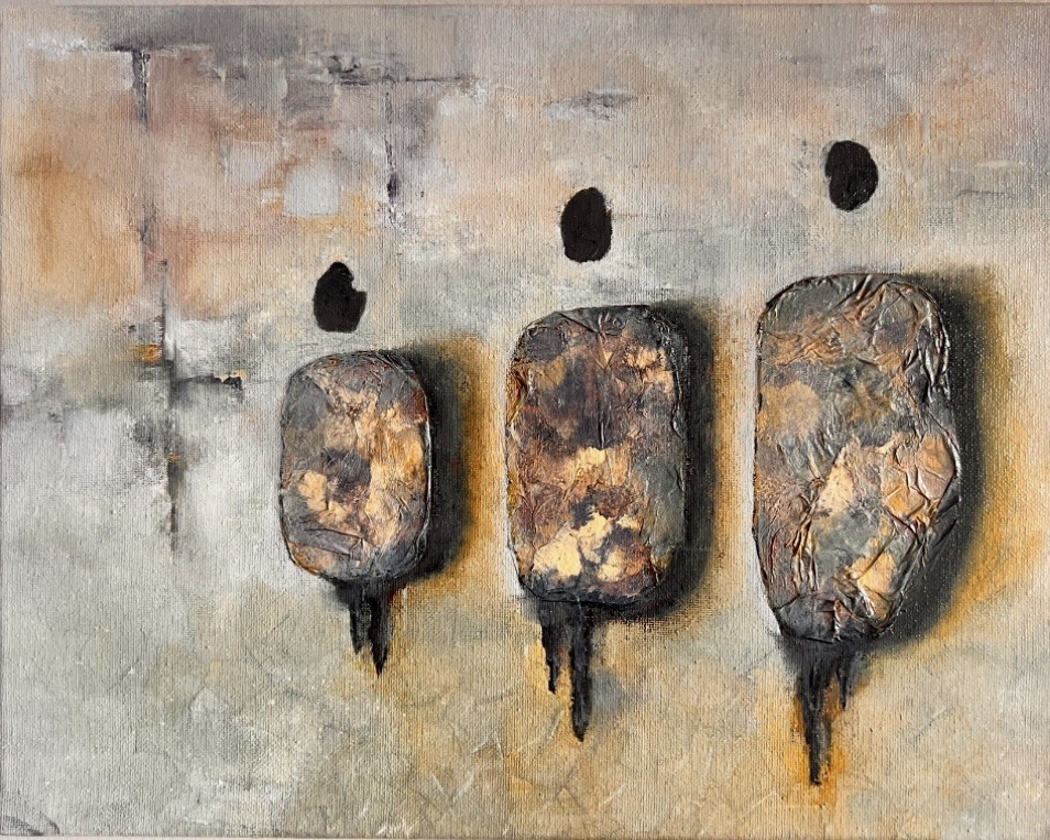 Karen Taylor is a mixed media artist whose work moves between abstract and landscape. Inspired by the natural beauty of the Sunshine Coast and the quiet intricacies of inner dialogue, her pieces often emerge from unspoken thoughts and emotions. Each work invites reflection on the inner landscapes we carry and the stories that remain just beneath the surface.