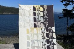 I am a fibre artist and create modern quilts and wall hangings. I have been a quilter for over 30 years. Lately I am more drawn to working with solid colours, appliqué, machine quilting as well as hand quilting. Living on the Sunshine Coast inspires me to work with natural colours.