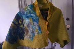 Art is an integral part of my life. I am constantly looking for new ways to express myself. My first medium was pencils and pastels, then oils and watercolours, and now mostly acrylics. While working with textures I have discovered dry felting on fabric , where the wool becomes my medium, and the results are practical luxurious wearable art.