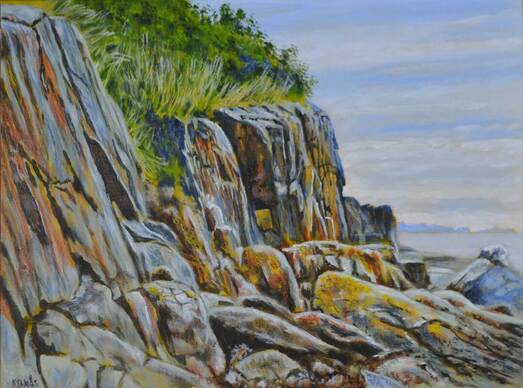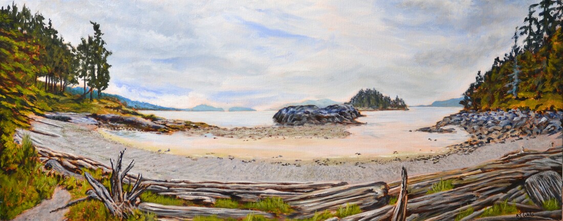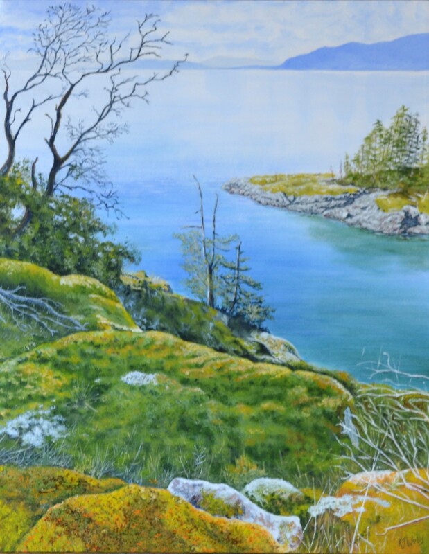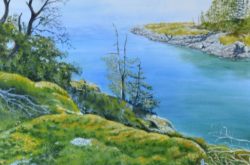 Kevin paints in a variety of media, favouring natural scenes with an abstract feel. Currently, he draws inspiration from hiking, kayaking and journeying around the Sunshine Coast, being particularly attracted to the play of light on shores and water. His most recent series of work was inspired by a trip from Lund to Desolation Sound. He has displayed work in shows with the Port Moody Art Association and Suite E Life Drawing group. He has more recently displayed work as an active member of the Sechelt Life Drawing group and at the ‘Friends of the Gallery’ show at the Doris Crowston Gallery.