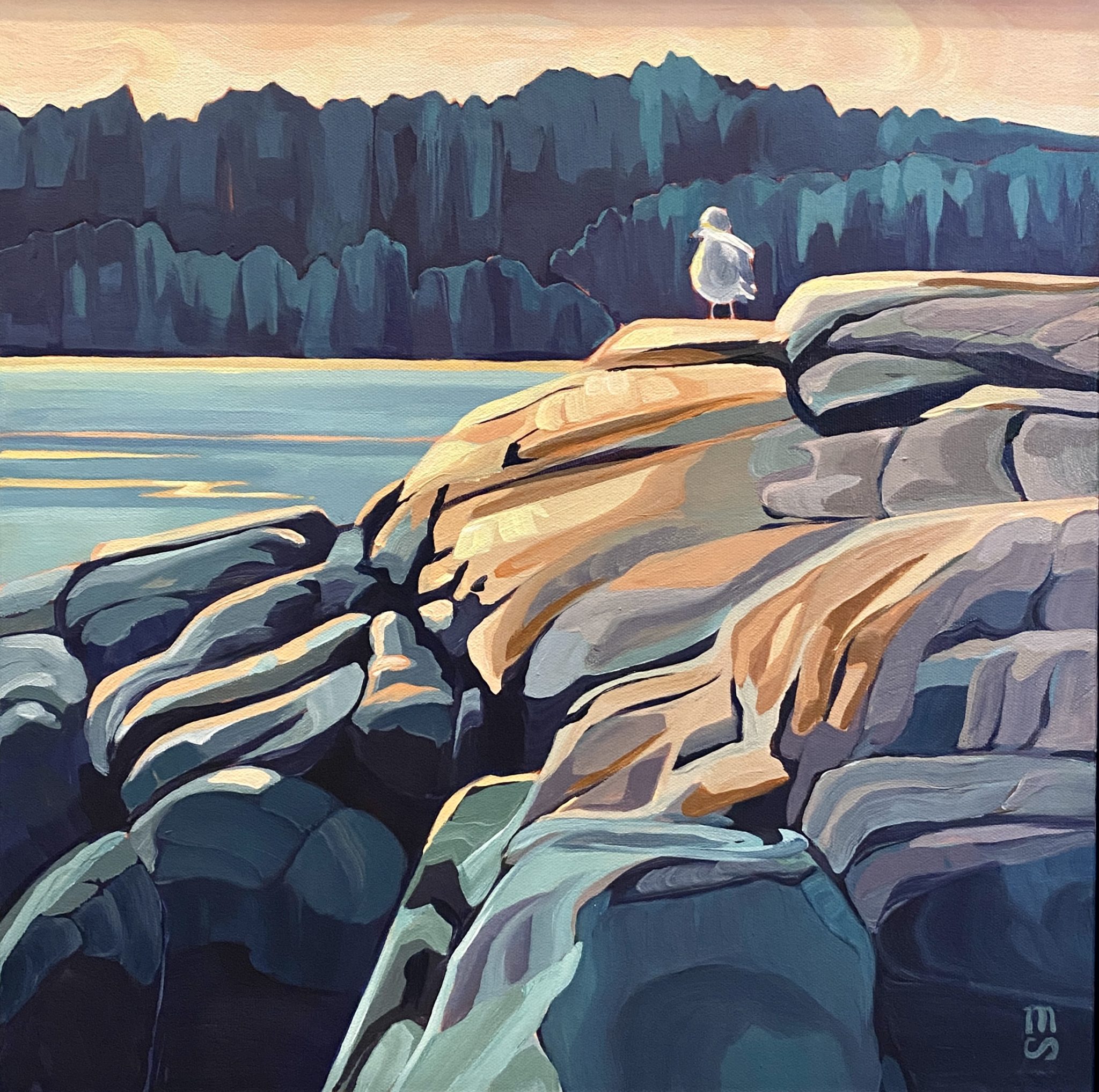Meghan Spence is a visual artist, creating paintings using broad, expressive brushstrokes and energetic colour. Her work centers around the wild landscape and the outdoor experience. Meghan’s paintings have been described as full of movement with a deep sense of place and adventure. She studied painting at Emily Carr University of Art + Design in Vancouver, BC. Her acrylic paintings are collected around North America and her work is shown in galleries and art spaces throughout the Province. Meghan creates out of her forest studio in Roberts Creek, beautiful British Columbia.
