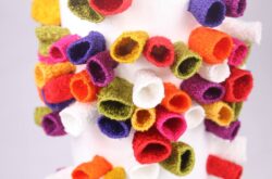 Contemporary textile artist Nell has a love of machine and hand embroidery. Nell essentially draws, paints and sculpts forms with only layers of thousands of stitches, no fabric, using the needle as a pencil, and the fabric as her canvas. Nell has challenged herself to explore the use of basic straight and zig zag stitch to create cloth with stitch only…with some help from a water soluble fabric. Using this technique and exploring different stitch tensions, Nell can create 3 dimensional artwork using only thread.