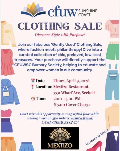 Join us for a fabulous Gently Used Clothing Sale and refresh your wardrobe while supporting a meaningful cause. Shop a curated collection of chic, pre-loved pieces at affordable prices Every purchase helps support the CFUWSC Bursary Society, empowering women through education. $5 cover charge Bring your friends, find unique treasures, and make a positive impact […]