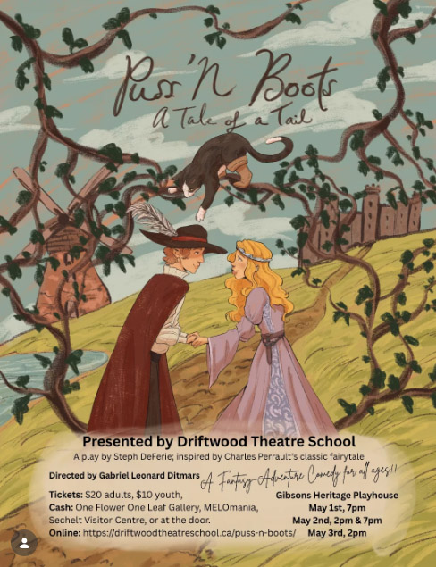 May 1 & 2, 7:00pm; May 2 & 3, 2:00pm. A production by a Driftwood Theatre School class, directed by Gabriel Leonard Ditmars. With A large and entertaining cast of characters following the story of a simple Miller’s son, an adventurous princess and a very mysterious and clever cat!