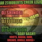 Superstar DJ Shinobi from Victoria, Florian, local legend, and myself, gumption – my bday bash. We’ve got breaks and jungle and house, roots and culture all night long.